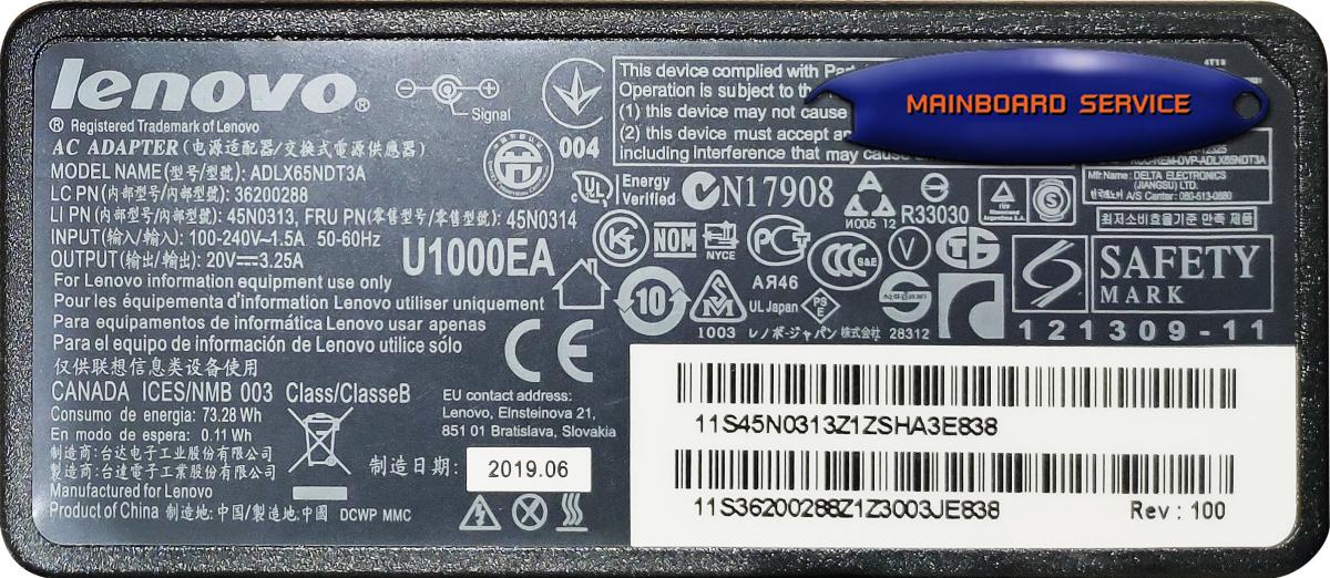 SA0101 : AdapterLenovo20V/3.25A(7.9x5.5)ORG