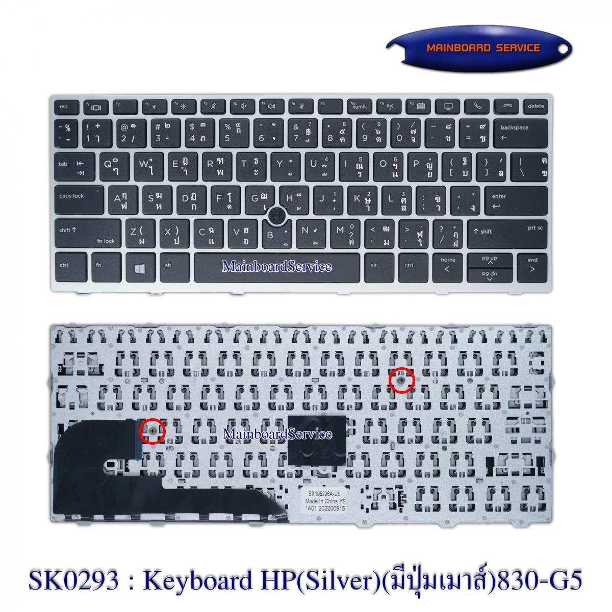 SK0293 : คีย์บอร์ดHP(Silver)(มีปุ่มเมาส์)830-G5,730-G5,735-G5,836-G5,830-G6,