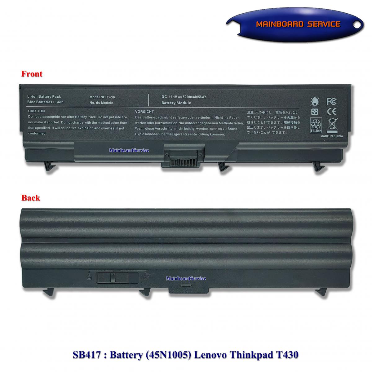 SB0417 : BatteryLenovo(OEM)(45N1005)(SB0473.ใช้ร่วมกัน)T430I,T530I,W530,L410,L412,L420,L421,L430,L510,L512,L520,L530,T410I,T420i,T510i,T520i,W510,W520(45N1004,45N1001,45N1105,45N1001,45N1000,42T4792,42T4793,42T4791,42T4790,45N1012,45N1013,