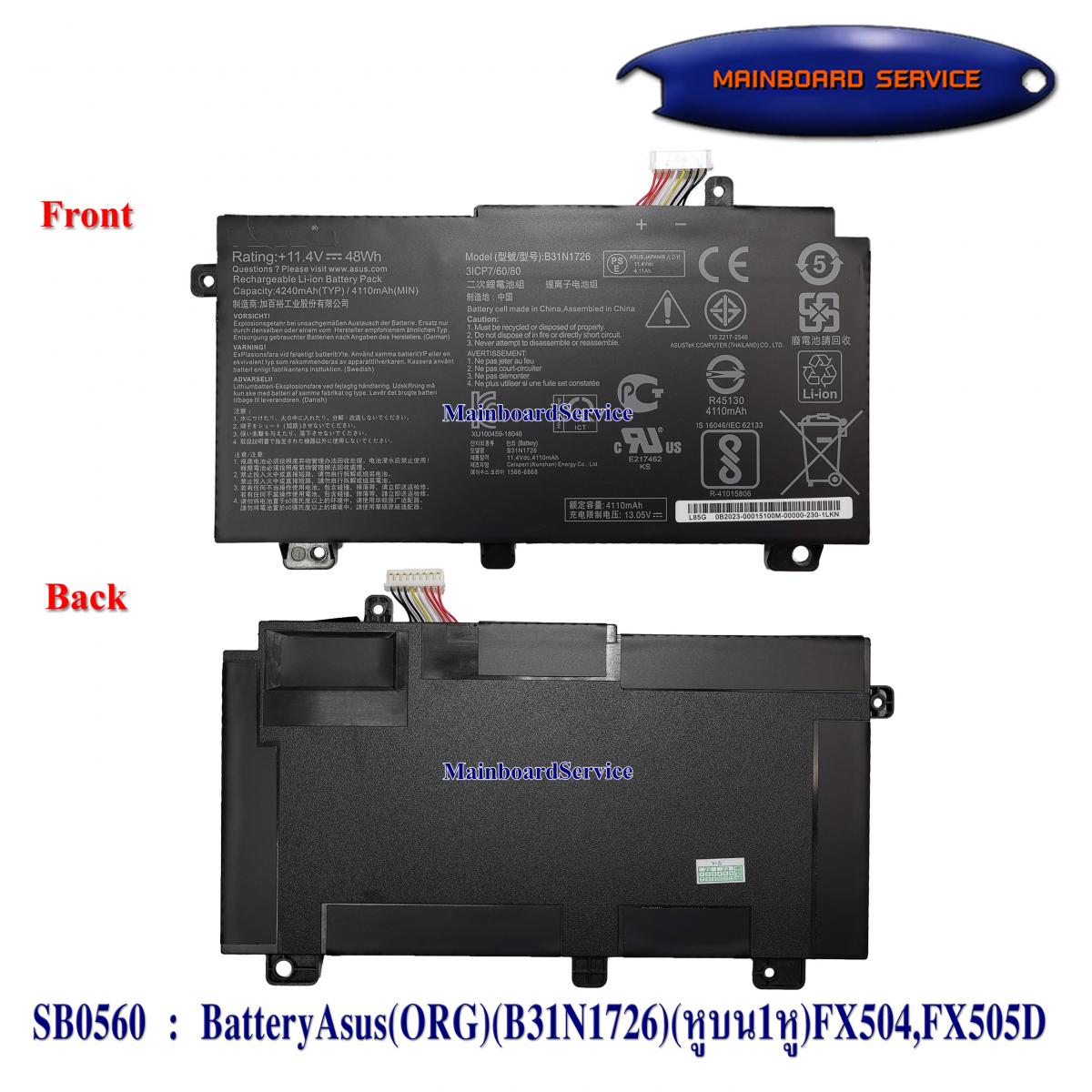 SB0560 : BatteryAsus(ORG)(B31N1726)(หูบน1หู)FX504,FX505D