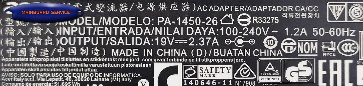 >> AdapterAcer19V/2.37A(5.5x1.7)ORG
