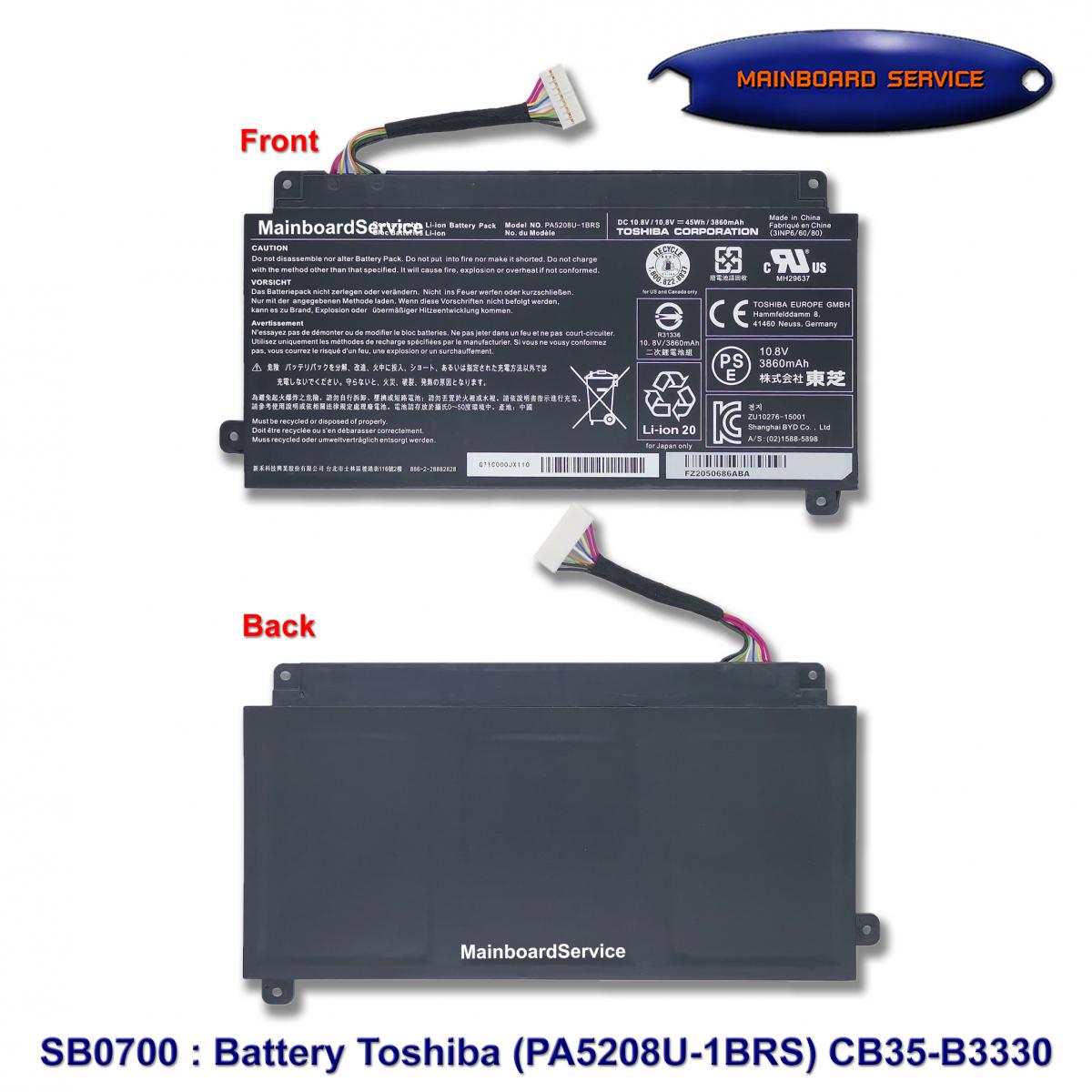 SB0700 : BatteryToshiba(ORG)(PA5208U-1BRS)CB35-B3330,CB35-B3340,E45W,C4200X,B07DSLQKT2,CB30-B3123,W-C4200,W-C5204,W-C5208