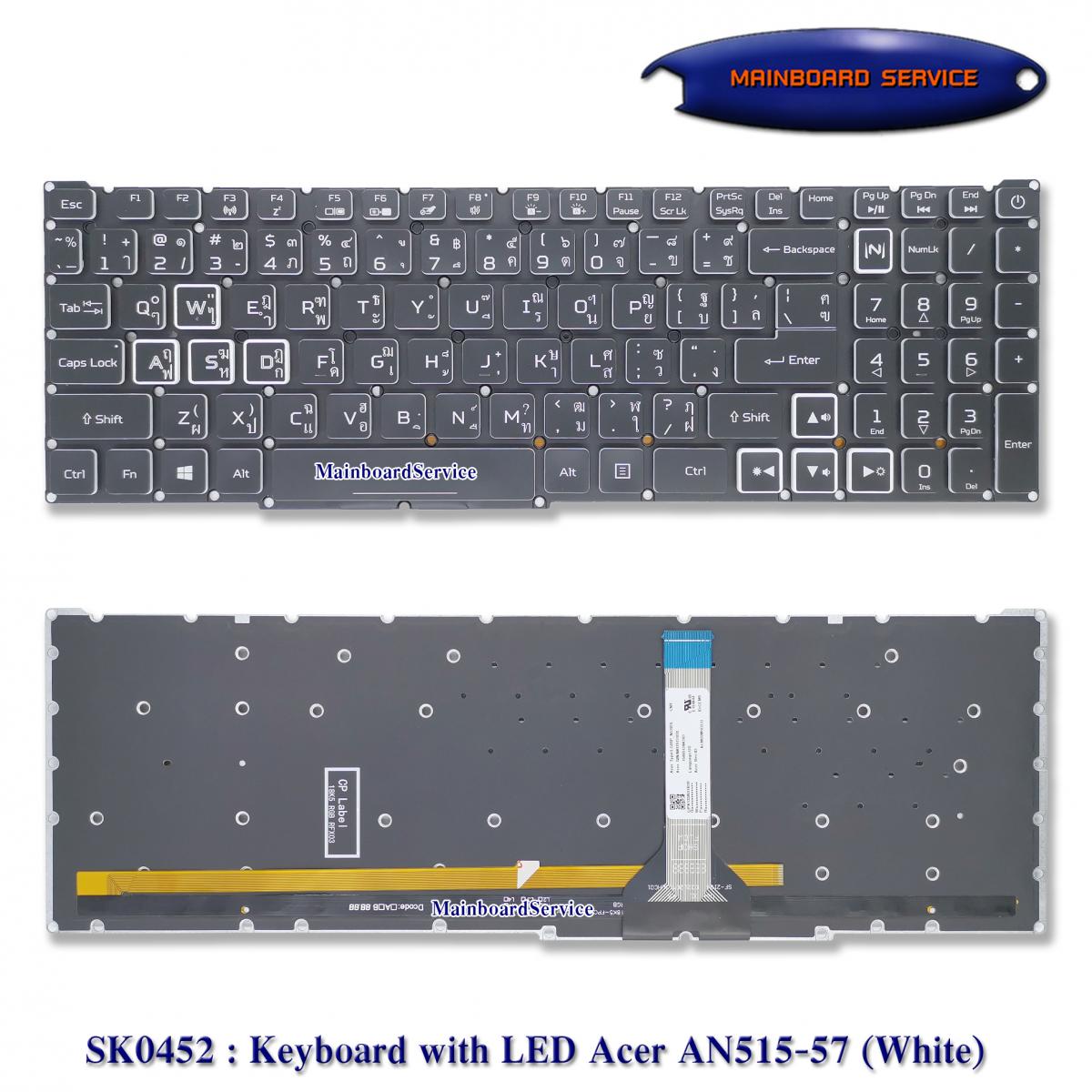 SK0452 : คีย์บอร์ดAcer(White)(LED)AN515-57,AN515-45,PH315-54,N20C1,PHN16-71-58MD,AN515-56,