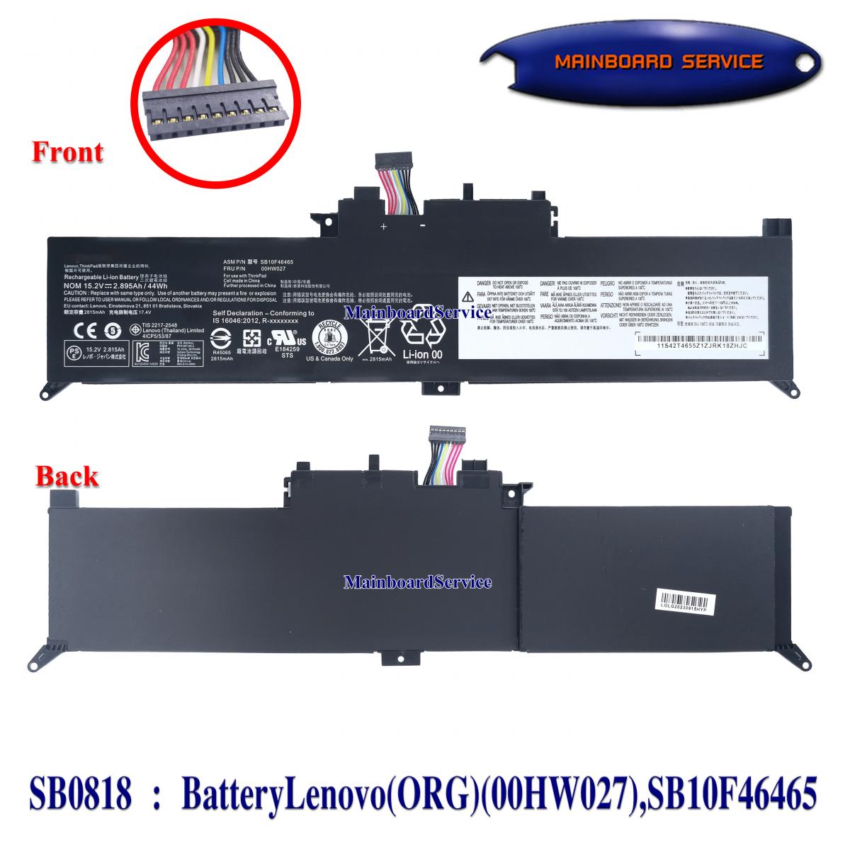 SB0818 : BatteryLenovo(ORG)(00HW027),SB10F46465,01AV432,01AV433,01AV434,00HW026,SB10K97591,YogaX260,X370,X380,20FD001XGE,