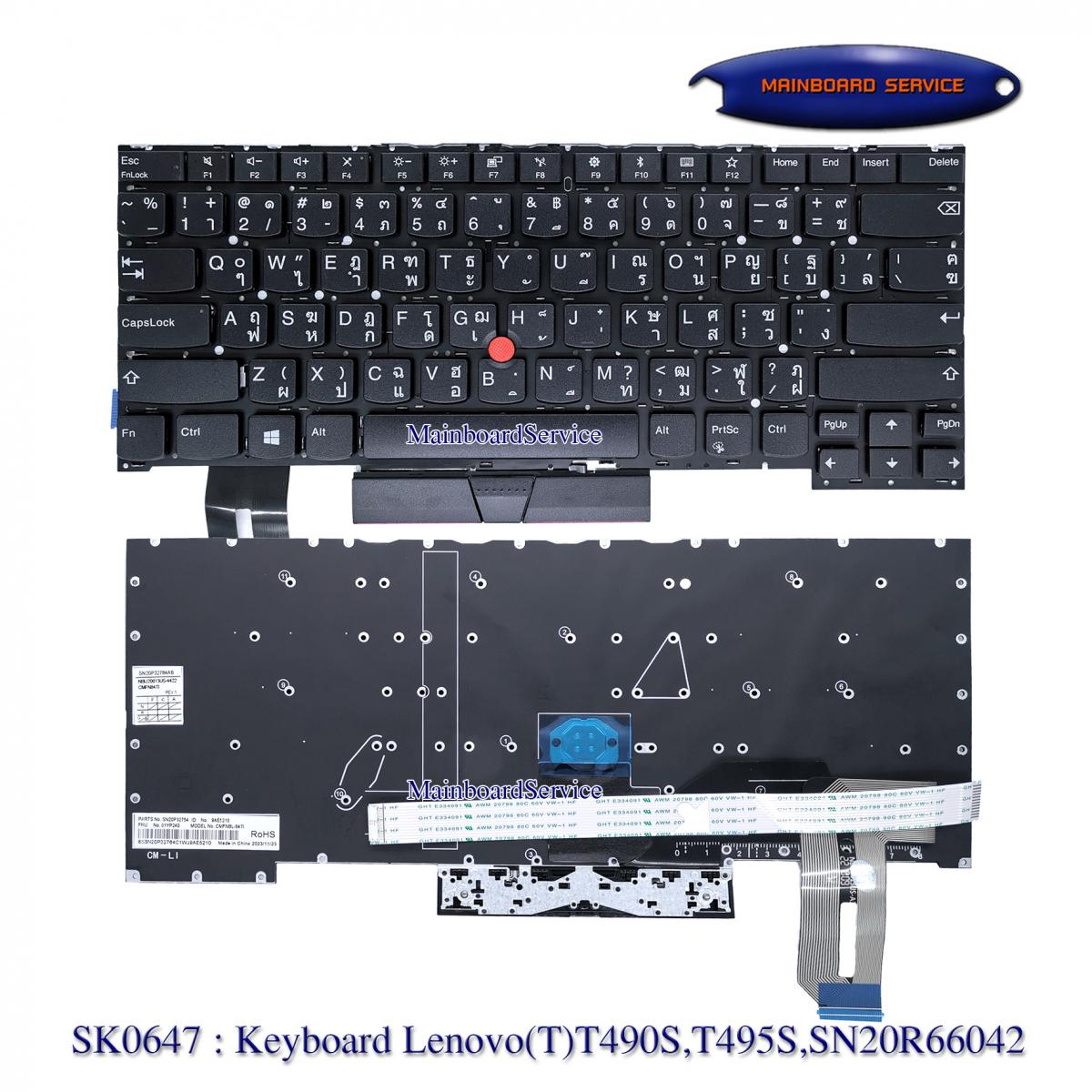 SK0647 : คีย์บอร์ดLenovo(T)T490S,T495S,SN20R66042,02HM208,02HM280,