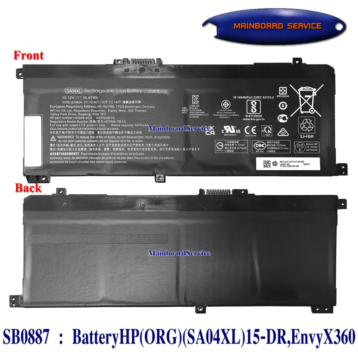 SB0887 : BatteryHP(ORG)(SA04XL)15-DR,EnvyX360,Envy,17-CG,