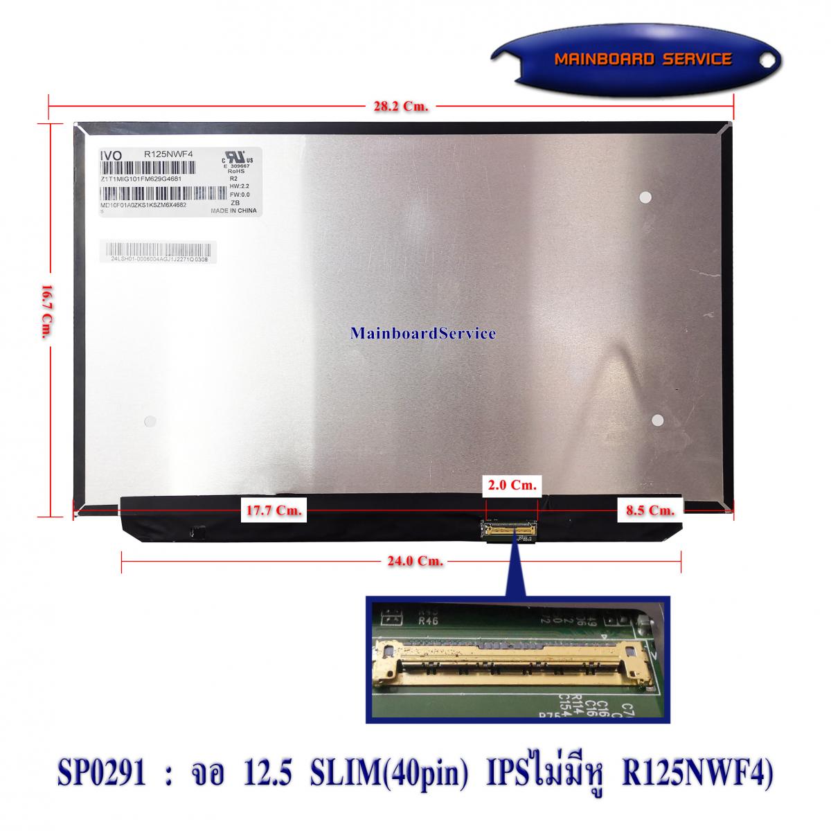 SP0291 : จอ 12.5 SLIM(40pin) IPSไม่มีหู(R125NWF4,B125HAK01.0,)(1920x1080)
