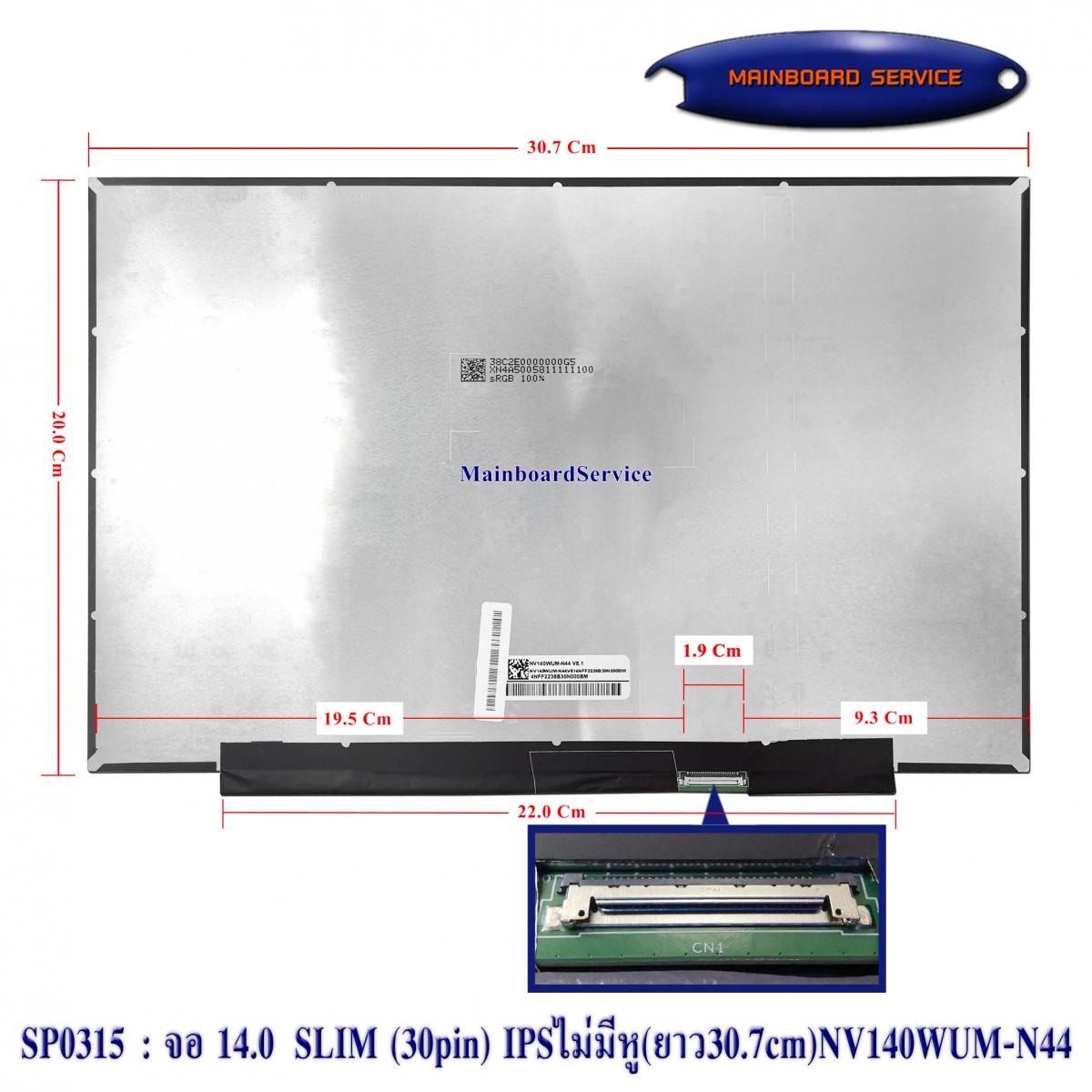 SP0315 : จอ 14.0 SLIM(30pin) IPSไม่มีหู(ยาว30.7cm)(NV140WUM-N44,B140UANAA.0,KD140N25-30N1-A005,KD140N25-30N1-A004,)(1920x1200)