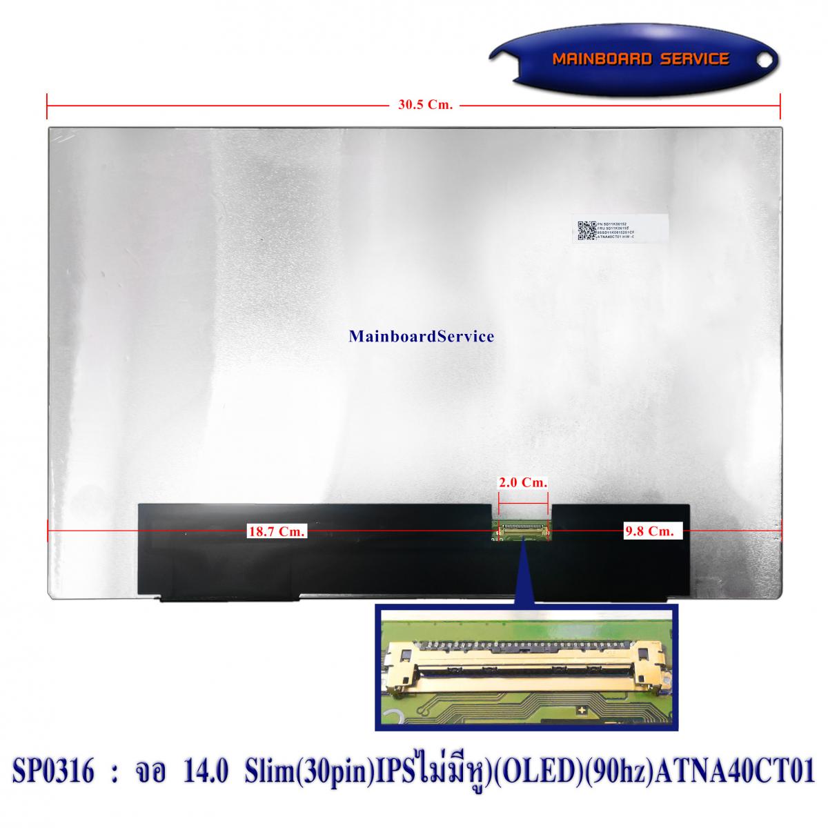 SP0316 : จอ 14.0 Slim(30pin) IPSไม่มีหู)(OLED)(90hz)(ATNA40CT01,ATNA40CT01-0,SD11K06152 )(1920x1200)Lenovo YogaSlim6,14IAP8,14IRP8,14APU8,