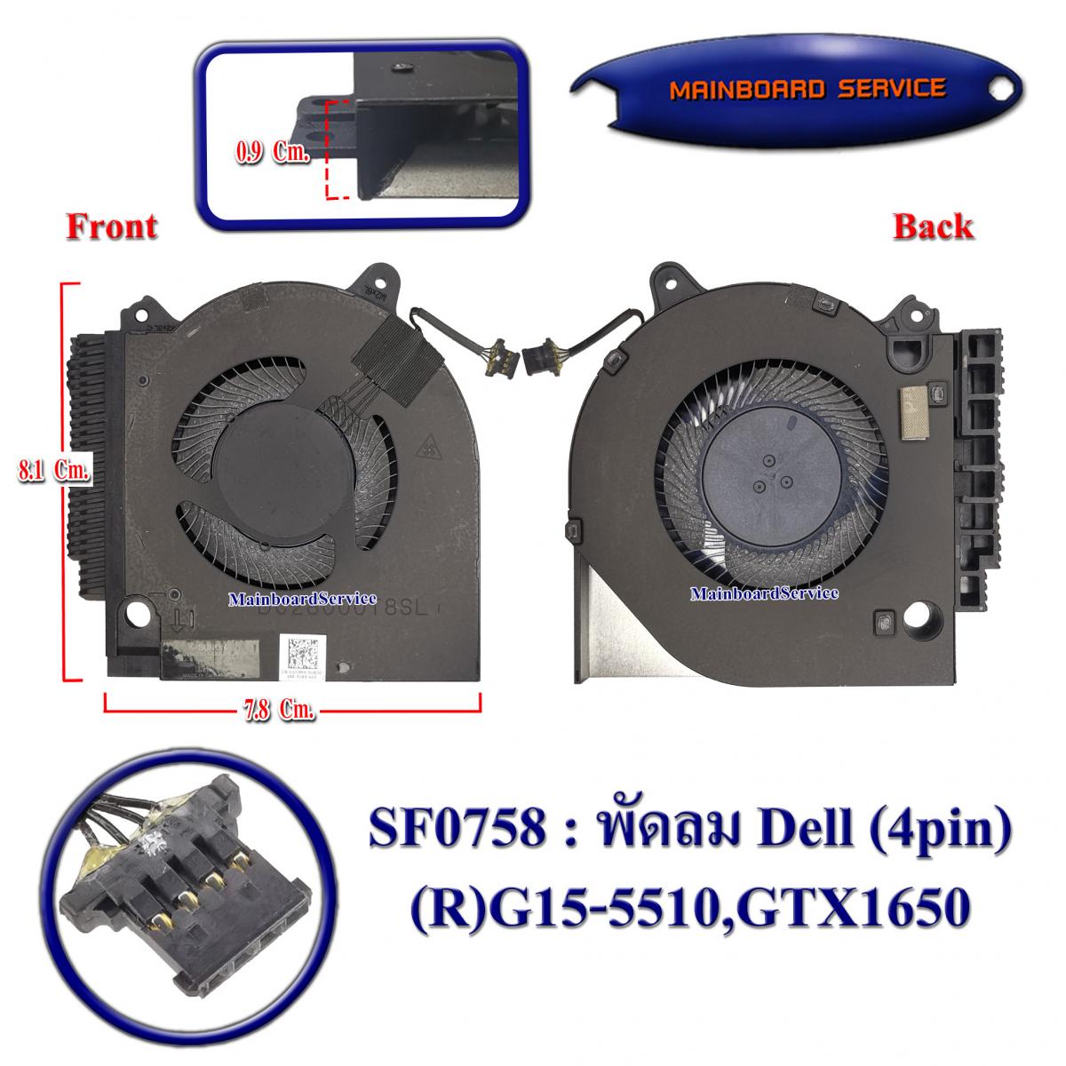 SF0758 : พัดลมDell(4pin)(R)G15-5510,GTX1650,0203MH,01JYXG,EG75070S1-C670-S9A,EG75070S1-C660-S9A(DC28000T8SL)
