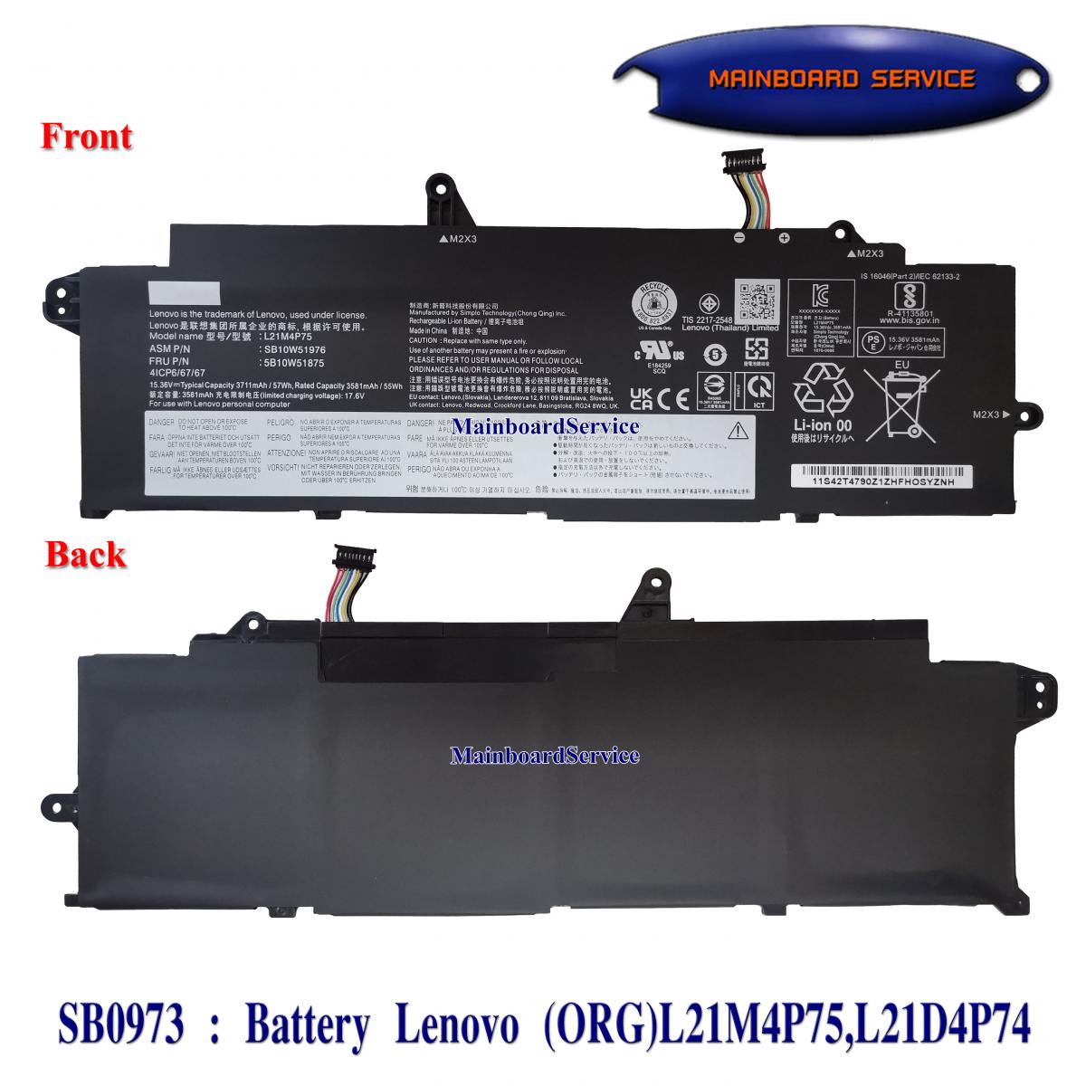 SB0973 : BatteryLenovo(ORG)L21M4P75,L21D4P74,L21L4P73,L21C4P73,SB10W51976,5B10W51875,ThinkPad-X13-Gen3,