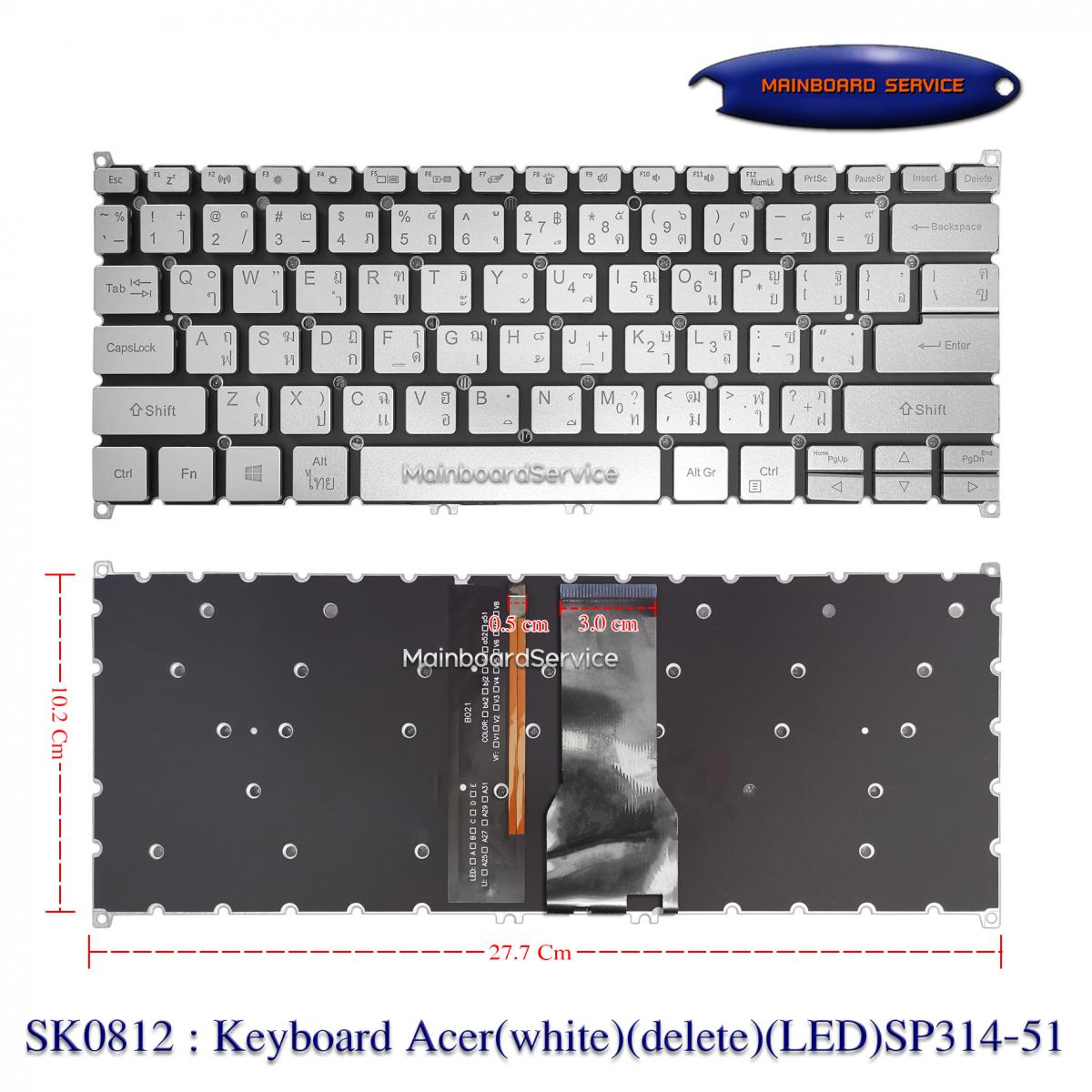 SK0812 : คีย์บอร์ดAcer(white)(delete)(LED)SP314-51,SP5113-53N,SPIN5,SP513-52N,SF114-32,SP513-51,SP513-53N,Swift3,SF314-54G,SF314-41G